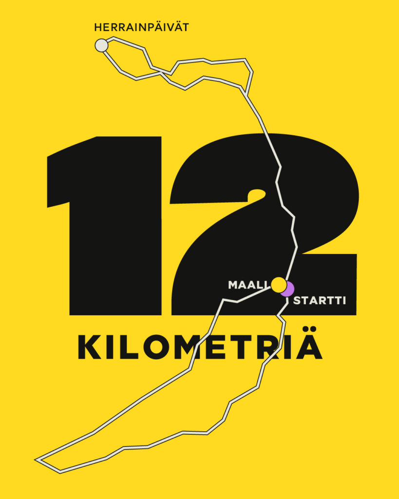 Monipuolinen polkujuoksukokonaisuus, joka kiertää Herrainpäivien luontopolun ja yhdistyy lopuksi Santojenlenkkiin.